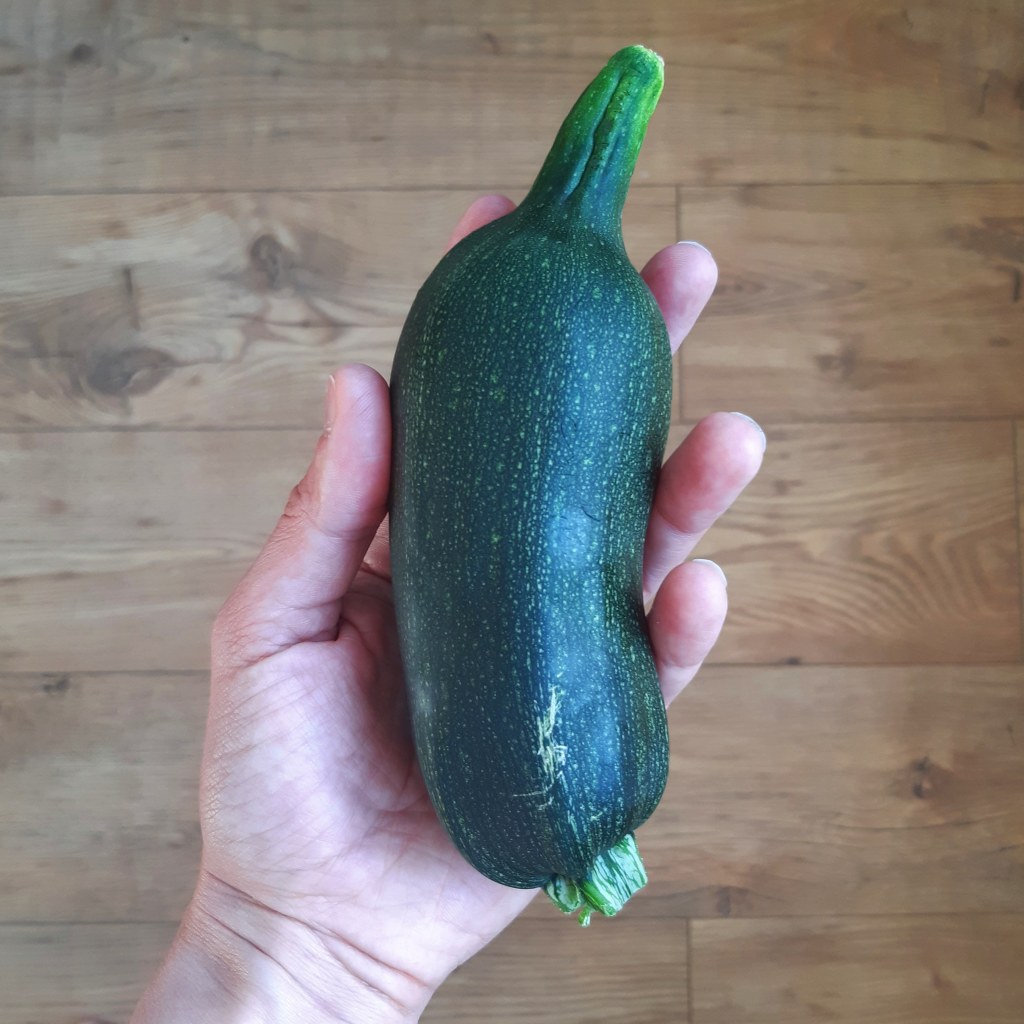 I did manage to grow two full (or maybe that’s not the best description) courgettes and I have to tell ya they sure were tasty! The looks on the other hand I’m not so sure about. This one grew in one of those weeks where everything was crazy and I just felt exhausted coming home and ended up not watering every day so it dried up at the tip.