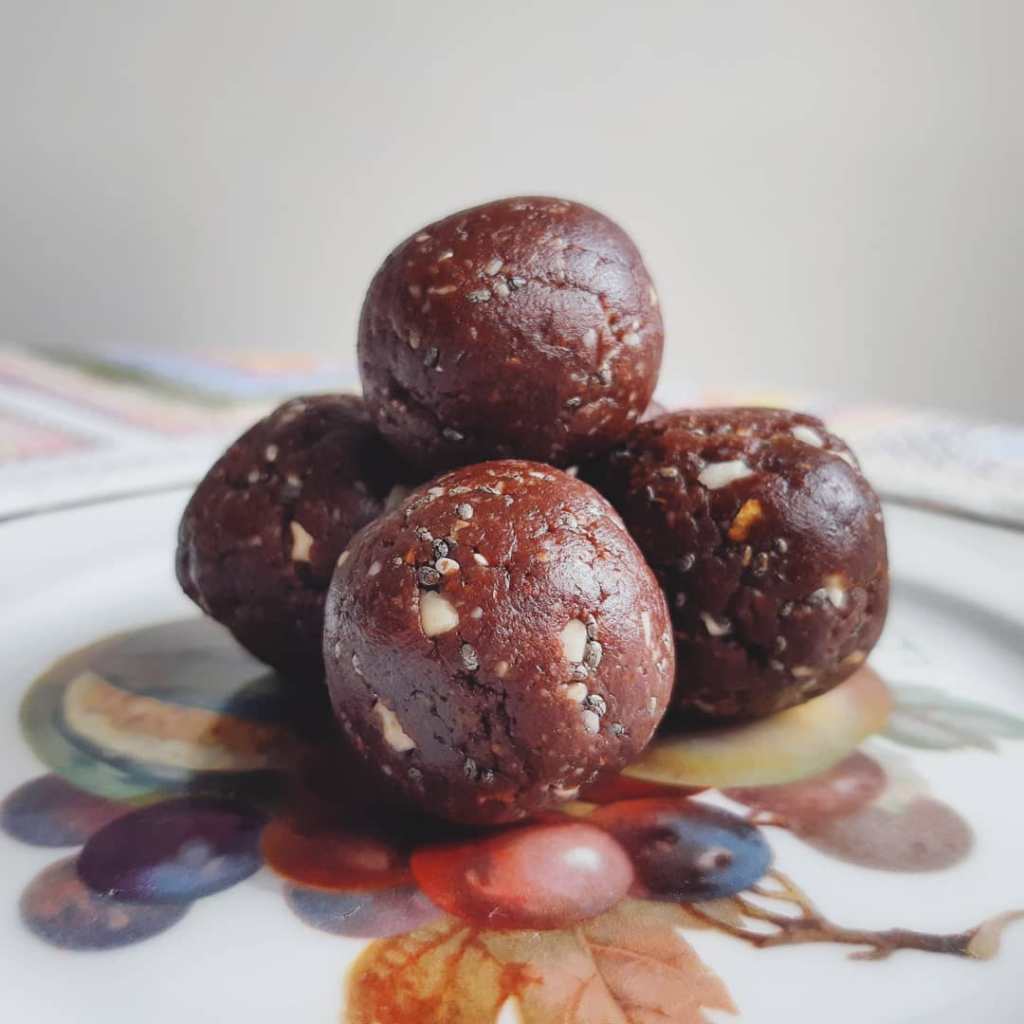 These chocolate and almond protein balls are very quick and easy to make and can be stored in the fridge for a quick grab and go if you are heading out and are feeling a bit peckish. One of the main reasons I love to bake is because I then know exactly what I have put in my bakes instead of trying to figure out all the different preservatives that are listed on the ingredient list. They are my go to for when I am craving something sweet but try to be healthier. The only sweetness you get from these protein balls is from the dates themselves. That’s it! No added sugars and no other junk. Now the dates are the most important ingredient and it matters which ones you use. Medjool dates are best for protein balls as they are soft and blend much easier than other kinds of dates that may be a bit harder. If you can not find any and only have the harder variant I recommend soaking them in some warm water beforehand to soften them up. I also only use almond butter that has 100% almonds in it. These nut butters may be a bit pricier than the ones that have other ingredients in them but if you can make almond butter with just almonds then there is no point in buying one that has palm oil for example as it is clearly not needed. Good for you and good for the environment and wildlife!