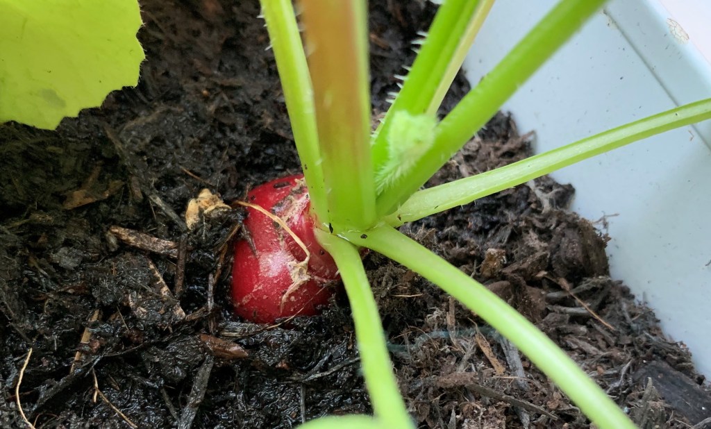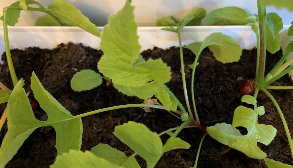I decided to grow some radishes as well but these have been grown in troughs in my kitchen window so they are pretty much fully grown. The good thing about the radishes is you can grow them in batches. Plant a few seeds and when they become seedlings plant some more so that way by the time you harvest some of them you’ll have others ready for harvest in a few weeks.