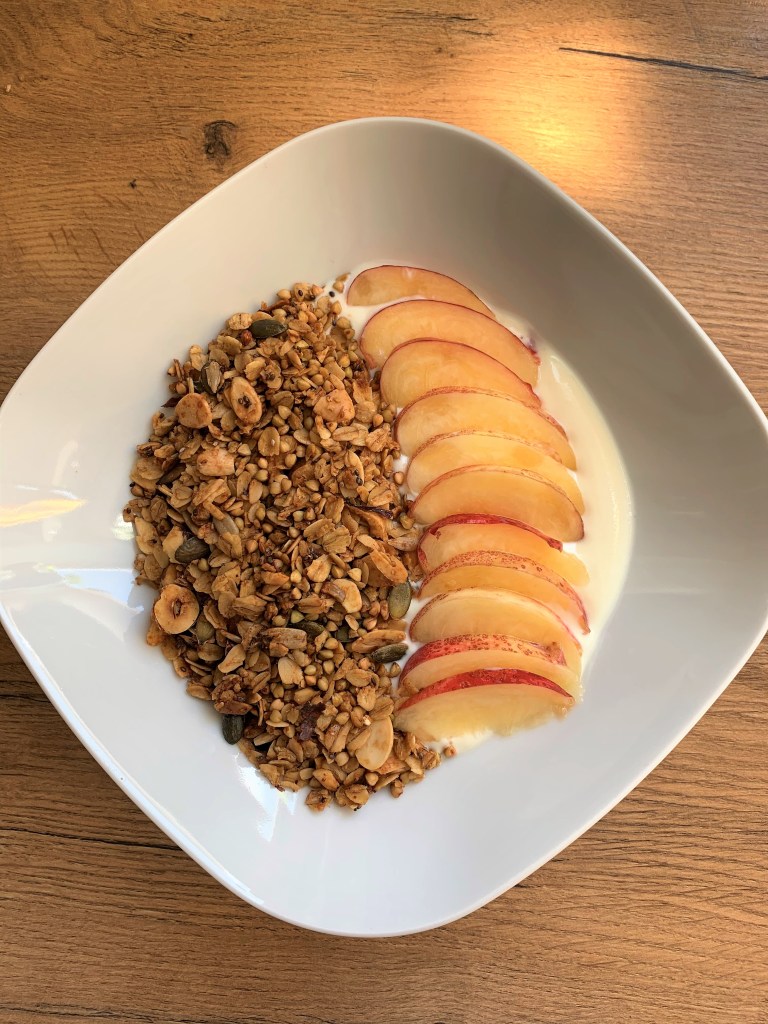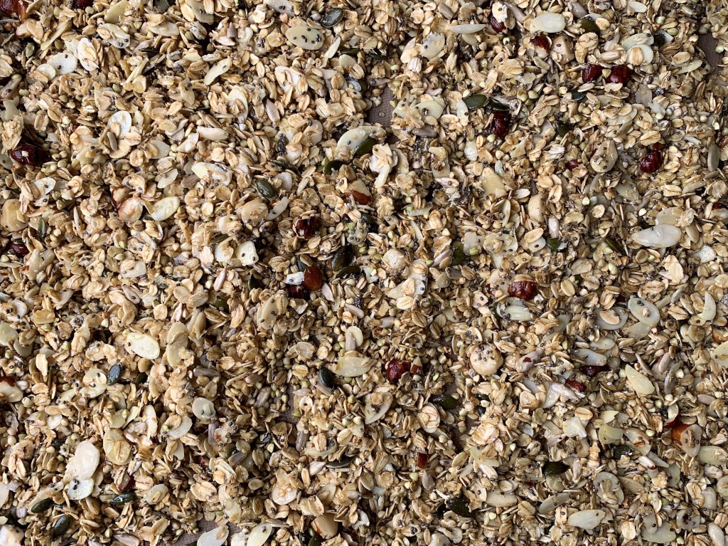 I have been making this nutty granola for a couple of years now. I usually only have it with some plant based yoghurt as it is rich in taste in itself due to the nuts and seeds but every once in a while I will add some fruit or berries for some extra flavour. This is a quick and easy granola recipe and it also works as a mid day healthy snack.