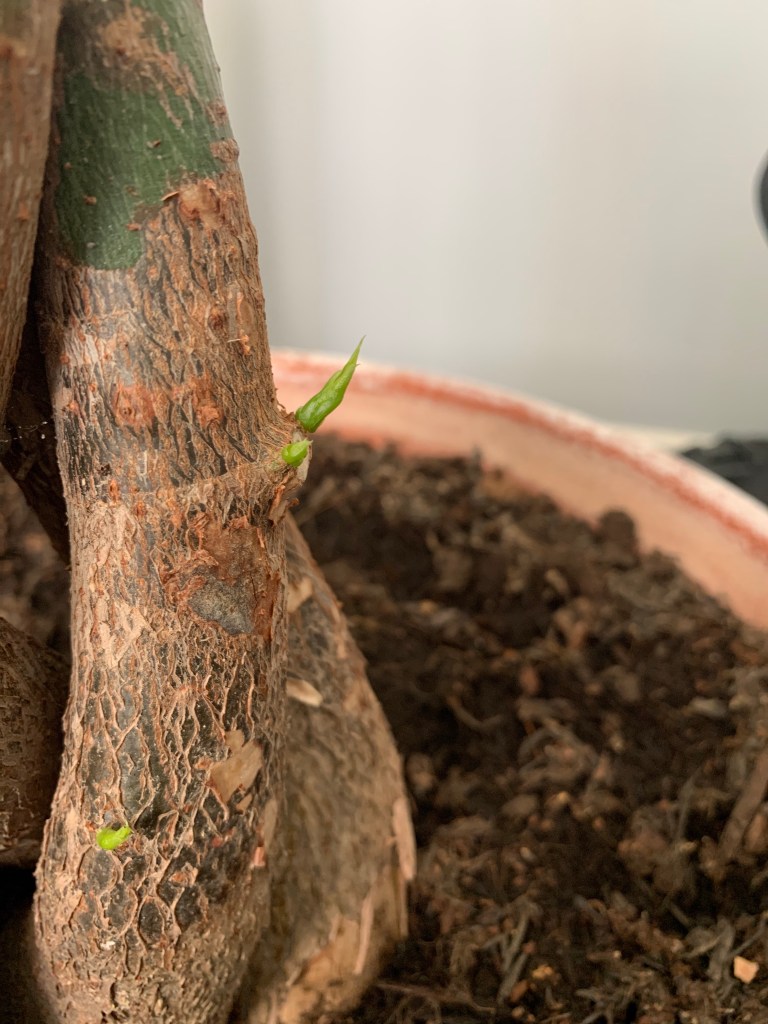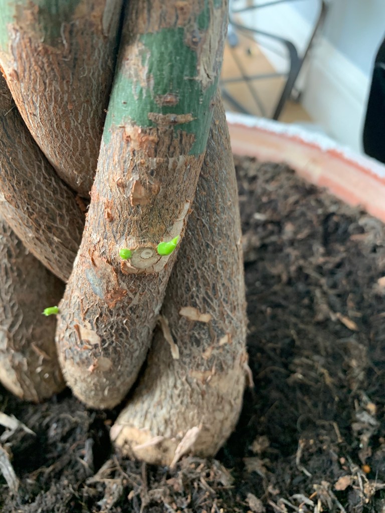 I also have one of my houseplants, a Guinea chestnut (pachira aquatica), that has decided to grow little babies all over. We’ve had this tree since last summer and a few months ago I noticed it was growing a small branch at the base of one of the trunks. I waited until it was big enough and cut it off and put it in some water which has now resulted in some root setting. As soon as the roots grow long enough I will plant it into a pot and see how big it gets. I have also noticed this week that that same trunk on my Guinea chestnut is growing even more babies which could mean more trees, we’ll just have to wait and see! I never thought growing trees would be so much fun, even though a bit slow, and ever since I first put my avocado seeds in water a year ago it’s been so amazing to see them grow into proper avocado plants from a small seed. I don’t know about you all but I just love to see life being created like that!