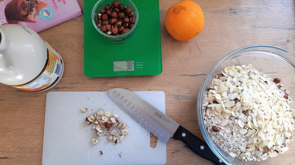 100g mixed nute (for my recipe I used hazelnut and flaked almonds split 50/50)