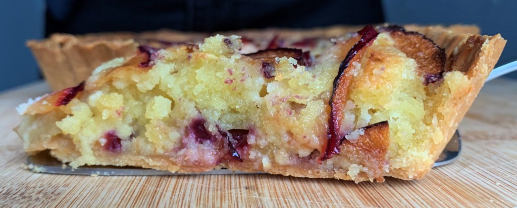 When I was younger, I never cared much for plums. But everything changed when my family moved to a house with a big garden and we discovered it came with a plum tree. Even our friendly neighbor had a tree that stretched over to our property, and we spent summers picking plums straight from the branches. Sadly, London flats don’t come with gardens, so I missed having fresh fruit at my fingertips. That’s why I made it a priority to find a new home with a spacious garden, so I could have some fruit tree of my own in the future. My love for plums was reignited when I subscribed to Oddbox, a fruit and veg subscription box that delivers surplus produce to your doorstep. Inspired by my newfound plums, I decided to make an almond and plum tart.
